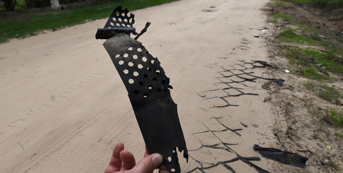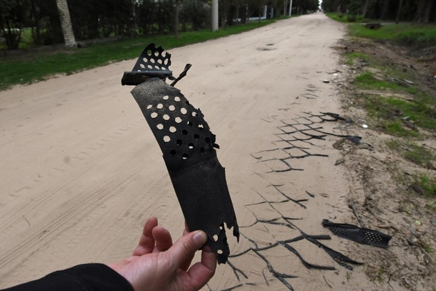 Piezas rotas. Hay partes de polietileno de alta densidad dispersas a los costados de las calles de tierra y arena. Crédito: Pablo Aguirre