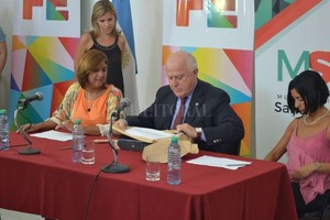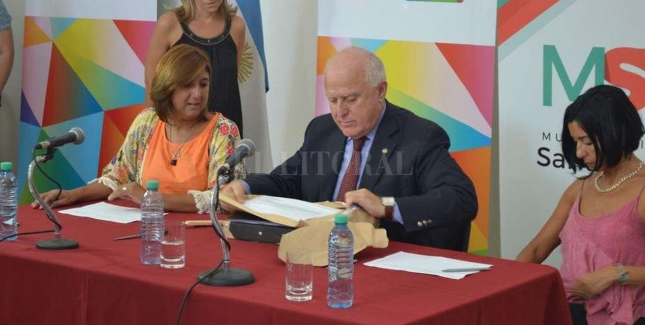 El gobernador Miguel Lifschitz y la intendente Daniela Qüesta licitaron hoy obras de mejorado en las calles, de construcción de veredas y de pavimentación en Santa Tomé. El acto licitatorio se realizó en el recuperado edificio de la Vieja Usina Eléctrica, ubicado en Rivadavia 1660.