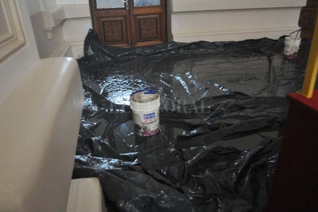 Uno de los sectores más damnificados fue el Salón Blanco —de actos, principal— ubicado en el primer piso del edificio gubernamental.