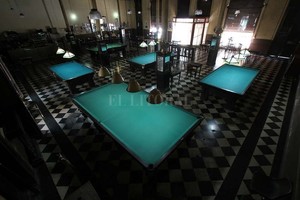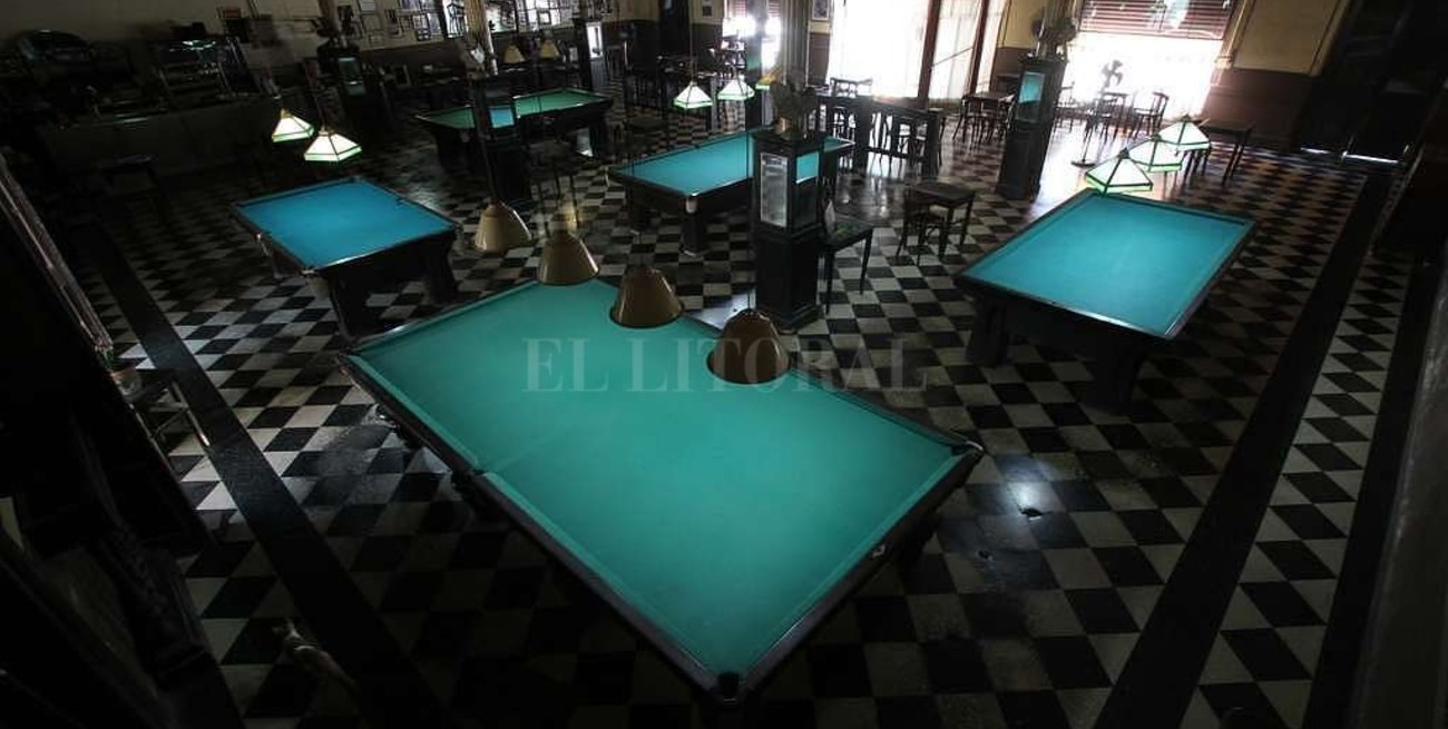Y si uno entra a esa cafetería puede ver y sentir que es como un reloj detenido en el tiempo. Con un piso de mosaicos en blanco y negro como tablero de ajedrez; con cinco mesas de billar tapadas con un nylon negro para proteger a los paños del polvillo, y aun más: alrededor de las mesas el piso está carcomido, como picado. Carcomido por el taconeo de los zapatos de los cientos de jugadores que pasaron por allí.