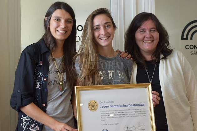 La joven futbolista fue galardonada como Joven Santafesina Destacada por el concejo de la ciudad. A instancias de un proyecto de Alejandra Obeid, se reconoció su lucha en el marco de la profesionalización del fútbol femenino, situación que fuera comunicada por la AFA en la pasada semana. Elogios para una joven que desde el deporte hace tiempo es referencia del colectivo feminista.