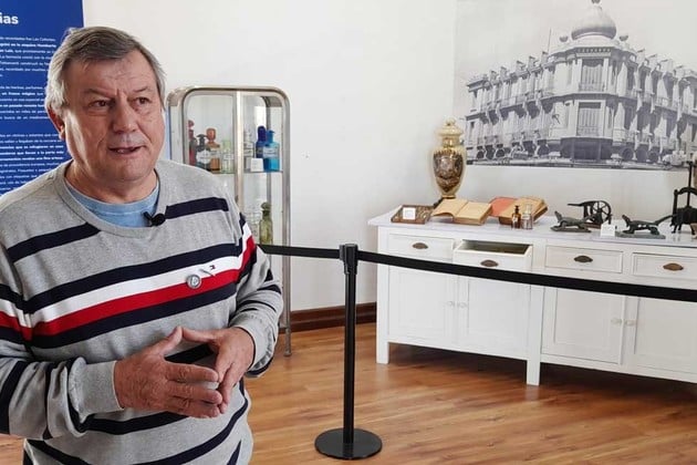 Y los sellos, antes, eran con pan de hostia. "Se usaba ese pan sin levadura, bien sequito… Y también tengo los viejos pildoreros, antes de que llegaran las cápsulas", cuenta. Después están sus muebles de la mítica farmacia Las Colonias: Mainero cuenta con un mostrador de 10 metros de estantería, una vitrina de seis metros y un mostrador de tres metros que llevaba una bastonera, que no era otra cosa que un caño de bronce que se ofrecía para que los clientes dejaran su bastón o paraguas.