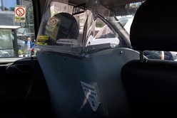 El registro gráfico es de septiembre de 2016, cuando se presentó en la explanada del Concejo un modelo de mamparas antivandálicas. Luego se sancionó por ordenanza su uso opcional en taxis y remises. Fue vetada y no prosperó. Crédito: Archivo El Litoral / Guillermo Di Salvarore