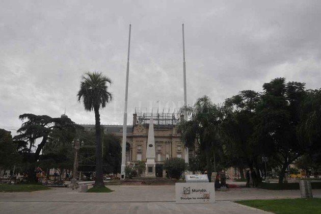 Los trabajos de remodelación de la plaza 25 de Mayo avanzan a buen ritmo y el paseo luce cada vez mejor. En el centro de la misma, fueron levantados los mástiles que cuentan con un sistema electrónico de izado, pararrayos y luces en el tope. Cada uno pesa cuatro toneladas y media.
