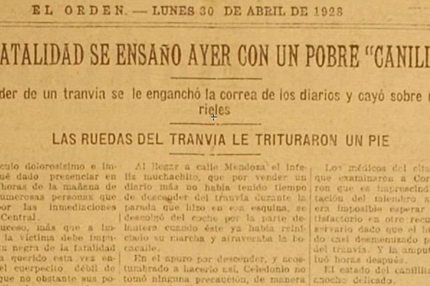 Finalmente, bajo el título “Celedonio Cornejo, el canillita, se ha transformado en pocos días hasta quedar enteramente nuevo”, El Orden dejó constancia del final feliz que tuvo la historia. En la foto se puede ver al niño con su flamante aparato ortopédico dispuesto para poder volver a realizar su labor en condiciones prácticamente normales. “Una pierna con la cual el canillita puede ser el de antes, sin dificultades para correr y sin la visión constante de su mutilación”, reflejó El Orden.