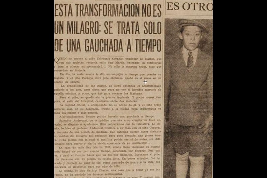 De un desgraciado episodio que lo dejó sin su pierna derecha, a la posibilidad de volver a moverse con normalidad gracias a la “gauchada a tiempo” de un especialista en ortopedia. El camino recorrido por el humilde canillita Celedonio Cornejo hace casi un siglo.