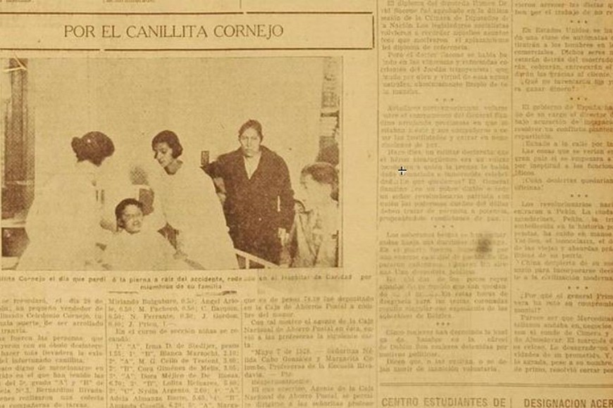 El vendedor de diarios Celedonio Cornejo tenía ocho años cuando un tranvía le trituró una de sus piernas, en abril de 1928. Se vio obligado a utilizar muletas durante tres años, hasta que una pieza ortopédica construida por el profesor Salvador Andreozzi le permitió volver a caminar sin muletas. La historia de un “pequeño héroe anónimo”.