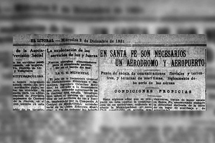 La idea de tener un aeropuerto en cercanías de la ciudad se vio reflejada en distintas ediciones de El Litoral y del extinto El Orden. Además del citado espacio al Este de la Laguna Setúbal, publicaciones de la década del ‘30 hablaban de terrenos, también a rellenar, a la vera del Río Salado, en cercanías a donde está emplazado el Cementerio Municipal.