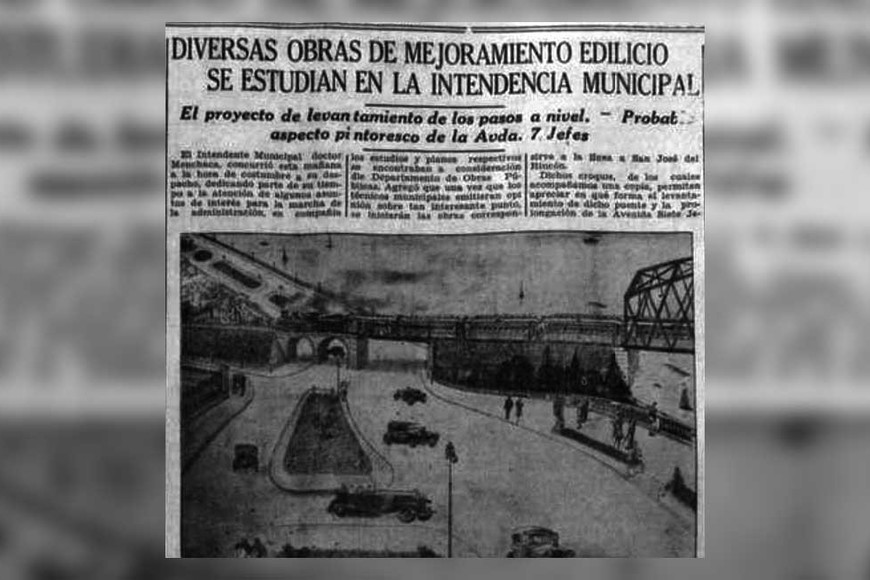 El intendente Menchaca reconoció la intención de “levantar” las vías para evitar los inconvenientes en el tránsito. “Anunció que los estudios y planos respectivos se encontraban a consideración del Departamento de Obras Públicas. Recordó que en su reciente viaje a Buenos Aires ha obtenido ciertos croquis ilustrativos de las obras que se proyecta realizar en la prolongación de la Avenida Siete Jefes, bajo el puente sobre la Laguna Setúbal, propiedad de la empresa F.C Santa Fe y que sirve a la línea San José del Rincón”, se explicó en el citado artículo.
