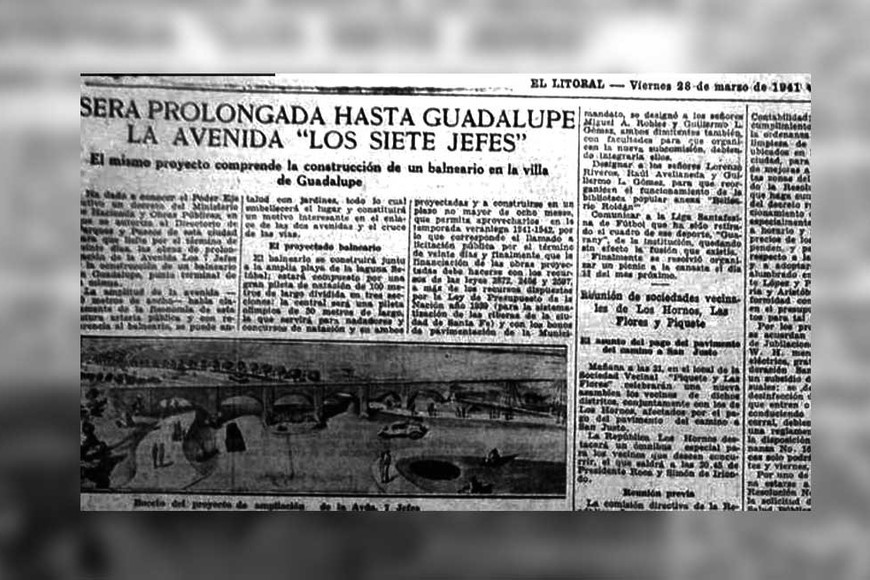 Pasaron siete años para que se aprueben desde Nación los trabajos planificados en la ribera santafesina. “Será prolongada hasta Guadalupe la Avenida ‘Los Siete Jefes”, tituló El Litoral el viernes 28 de marzo de 1941.