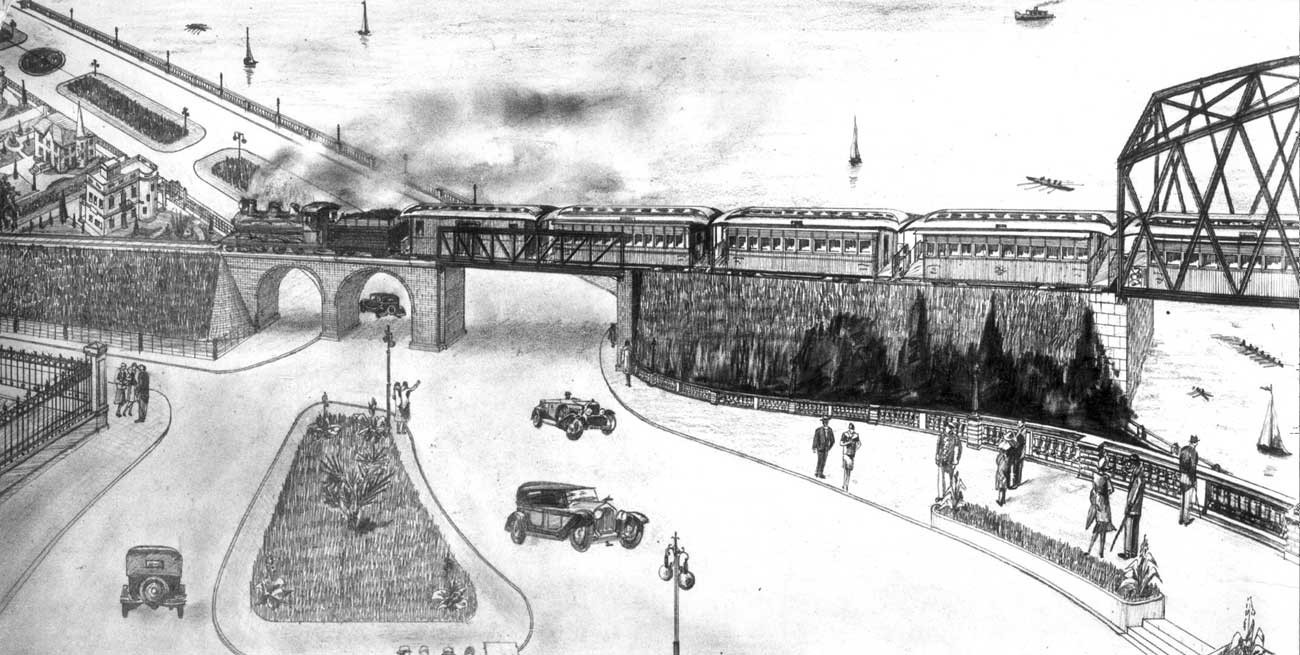 En otro tramo de la nota, se explicó cómo sería esa construcción para el tren. “El cruce de las vías del F.C.S.F. por su altura, obliga a dos soluciones: pasar por debajo de ellas o a nivel de la vía. Tanto por su faz económica como por su aspecto técnico y ornamental y de tráfico, se ha resuelto pasar por debajo de las vías del ferrocarril construyendo para ello tres arcos iguales o los dos existentes para pasar por las calzadas y por las veredas,” describió el diario.