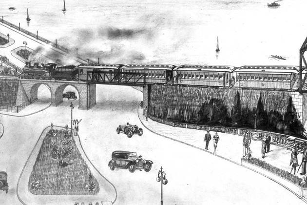 El artículo estaba acompañado por el croquis de un novedoso diseño que incluía la elevación de la línea del FF.CC Santa Fe (francés) para luego tomar el puente ferroviario instalado sobre los eternos pilotes. 65 años después, ese dibujo fue digitalizado y guardado en los archivos fotográficos de El Litoral.