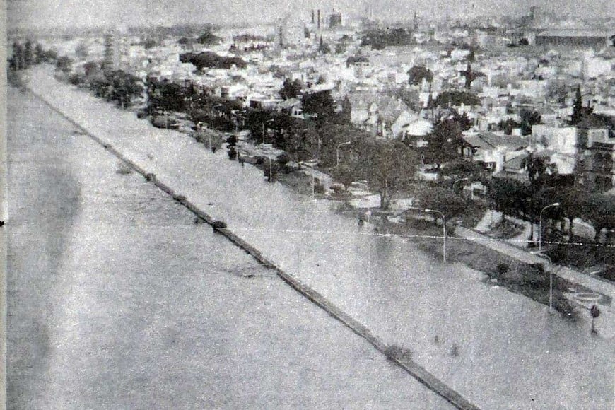 “Las dos calzadas, como puede apreciarse en la nota gráfica, han sido cubiertas por las aguas, provocando graves problemas a los vecinos del sector”, explicaba el vespertino en la descripción de la imagen.