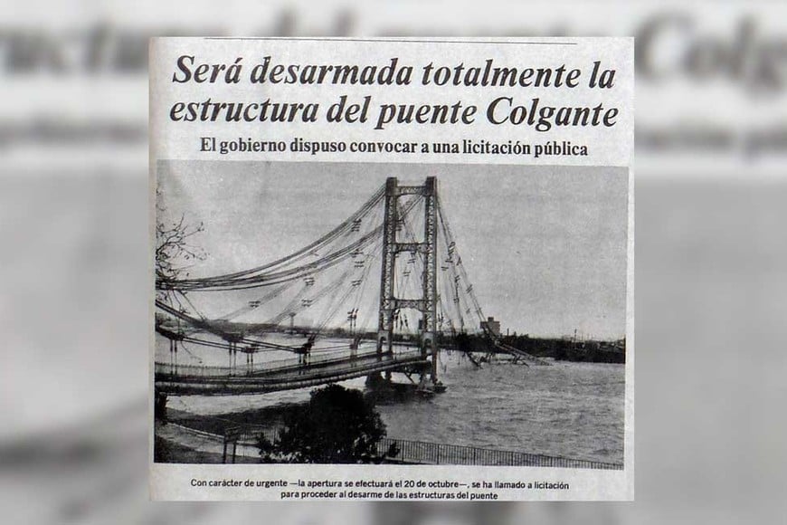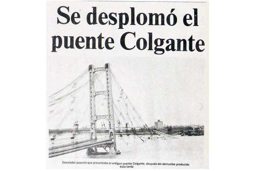 La crónica informativa daba cuenta que: “El viejo puente, todo un símbolo, se desplomó en su estructura, o columna del sector este (El Pozo), en tanto que corría igual riesgo la columna del sector oeste. Cabe destacar que a través del puente corría la tubería del agua que llegaba desde Colastiné hasta la planta potabilizadora de Obras Sanitarias, en barrio Candioti”.
