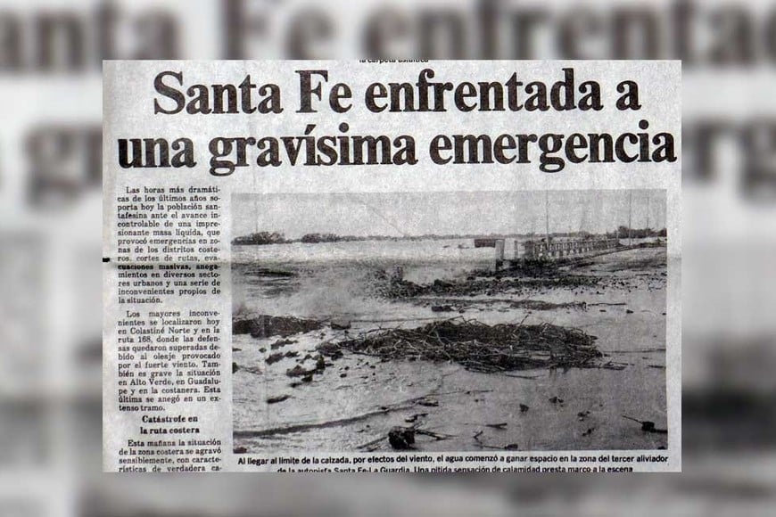 Fue en julio de 1983, mientras avanzaba la creciente del río Paraná sobre la región. Ese año la fuerza del agua tumbó la antena Oeste del Puente Colgante y provocó serios daños en la Ruta 168. El recuerdo de la tensión del momento.