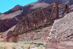 ¿Qué lo llevó a construir uno de los puentes de mayor magnitud para la época y a tal elevado costo? No lo sabemos con veracidad. Lo cierto es que los franceses contrataron, en 1929, a una empresa alemana que proyectó y realizó un puente de hierro fabricado en Europa, de cuatro tramos, sobre dos estribos en cada costa y tres pilares de cemento que fue inaugurado en 1935 y desmantelado en 1943 para utilizarlo el Ferrocarril Trasandino.