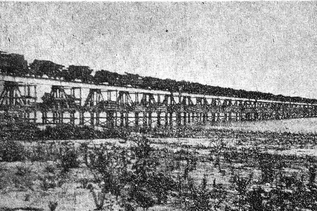 Este fue el primer puente ferroviario que cruzó la laguna con una longitud de 198 metros. Los pilotes, travesaños y cruceros del puente eran de madera de quebracho colorado o urunday, y la superestructura consistía en un par de vigas longitudinales de “fierro batido” con durmientes atravesados de madera. Esta obra permitía salvar la laguna en su parte más angosta e instalar los 12 kilómetros y medio de carriles hasta el puerto de Colastiné que con el tiempo llegó a ser un lugar de mucho movimiento a pesar de estar sujeto a las bajantes y crecidas del río.