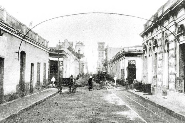 La ciudad era pequeña, puede decirse que por el norte terminaba en la calle Catamarca y por el oeste en la calle San José (hoy Francia). Aún dentro de esas arterias y el riacho de Santa Fe, había algunas huertas, baldíos y quintas. Al norte de la calle Catamarca, al oeste de San José y este de las vías y talleres del Ferrocarril Santa Fe, había tierras cultivadas, unas que otras viviendas, calles cubiertas de malezas, sin pavimentos ni veredas, lodazales cuando llovía y colchones de polvo durante las sequías. Alrededor de la Plaza de las carretas (plaza España) existía un núcleo próspero de población, unido al centro de la urbe por el tranvía de tracción a sangre.