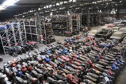 Una vez finalizado el operativo se consigue lugar en el corralón para depositar más motos. Guillermo Di Salvatore.