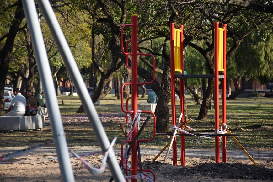 Tras el retiro del cerramiento en altura y la nivelación del terreno, los nuevos juegos ya están instalados. En 15 días el espacio público quedará habilitado. Pablo Aguirre