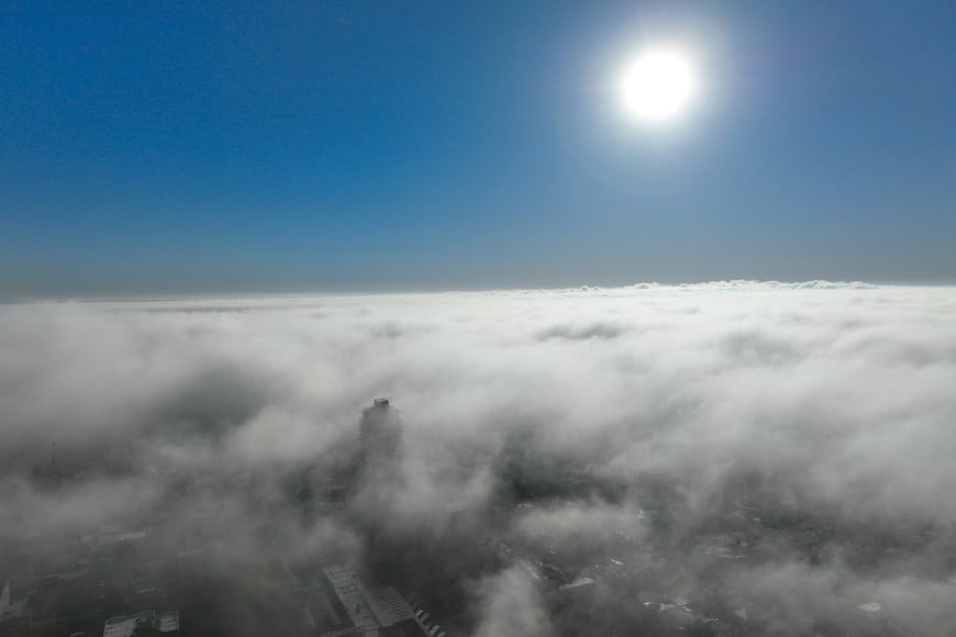 Dichas condiciones favorecieron la presencia de la niebla, que en una de sus postales más impactantes cubrió la laguna Setúbal y ambas costaneras santafesinas.