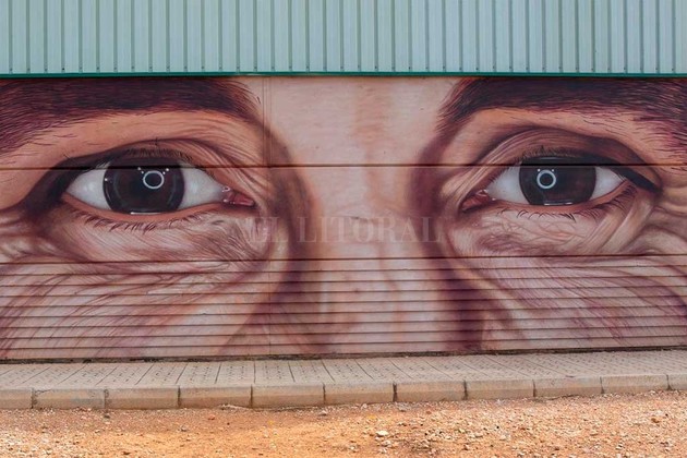 Al ser consultado, el muralista santafesino contó que a este retrato lo terminó en “tiempo récord: cuatro días y 100% aerosol”, dijo.