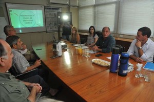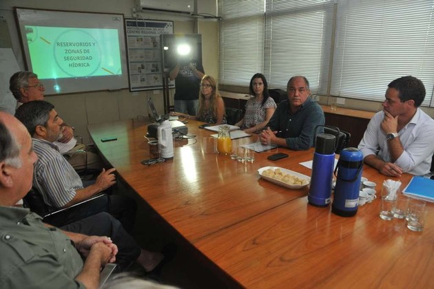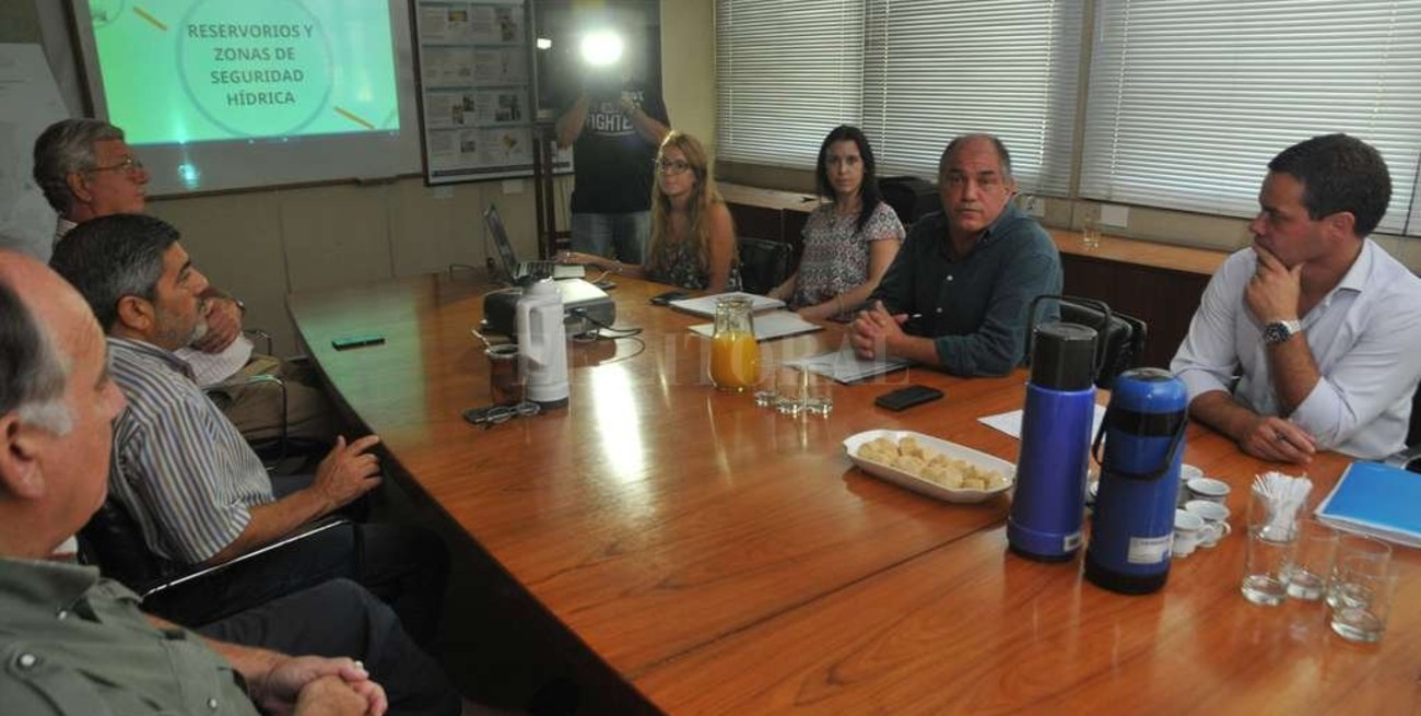 Flavio Raina Simoniello y González explicaron los ejes de la propuesta, que aguarda su tratamiento en el Concejo, a los especialistas del Instituto Nacional del Agua (INA).Flavio Raina Simoniello y González explicaron los ejes de la propuesta, que aguarda su tratamiento en el Concejo, a los especialistas del Instituto Nacional del Agua (INA).