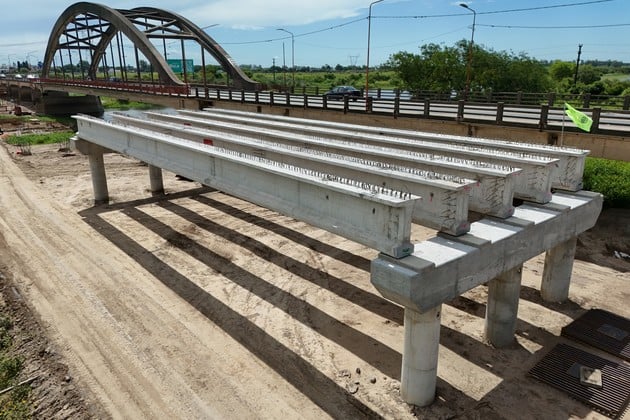 Otro de los hitos recientes fue el inicio de la colocación de prelosas prefabricadas. Según explicaron desde Obras Públicas, ya se completó un vano entero y el montaje continuará en las próximas semanas. Estas prelosas funcionan como una plataforma inicial y como encofrado permanente sobre el que luego se ejecuta la losa definitiva del puente, quedando integradas a la estructura final.