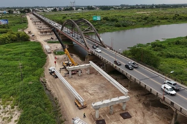 Dos semanas atrás, El Litoral informó que comenzó la colocación de vigas longitudinales de unos 30 metros en el marco de la obra para el nuevo puente Carretero, que conectará Santa Fe con Santo Tomé.