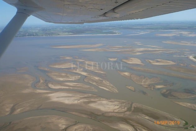 Geólogos investigadores de Ciencias Hídricas de la UNL sobrevolaron la zona para realizar un registro fotográfico de los ríos, arroyos y lagunas durante la bajante del río Paraná.