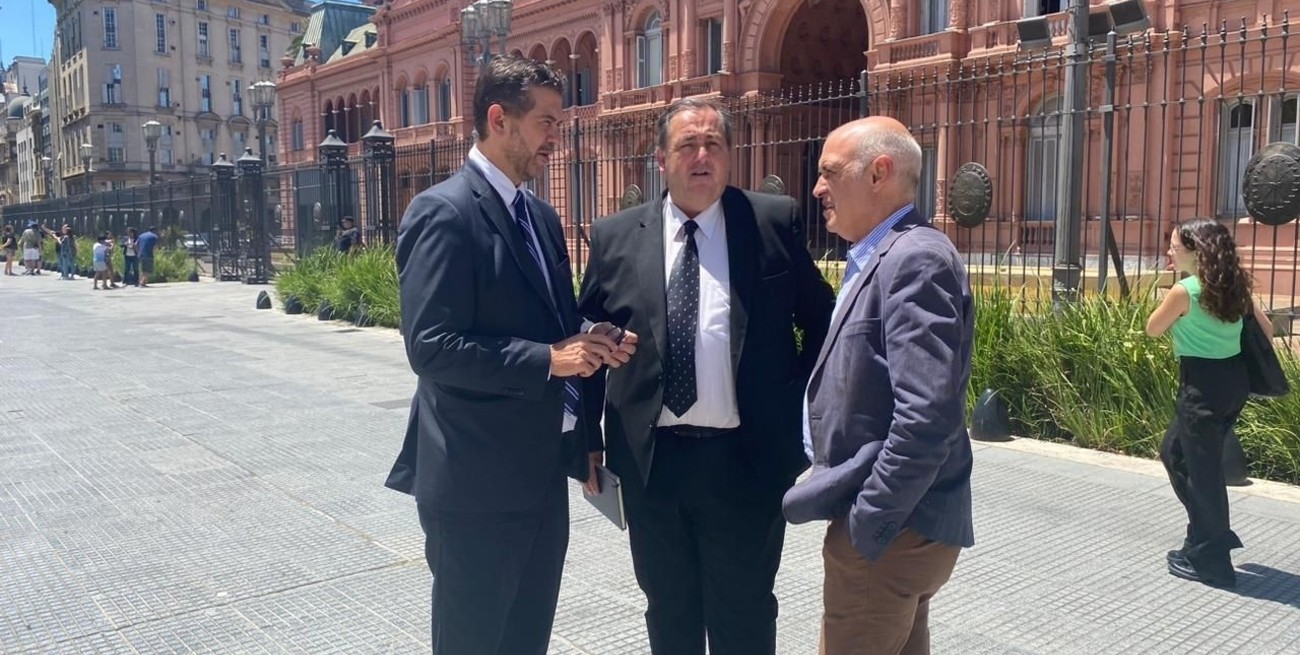 El intendente y sus funcionarios frente a la Casa Rosada, este martes. Gentileza