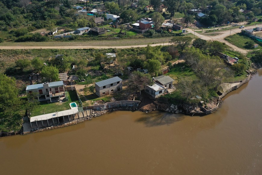 Un kilómetro del talud de la defensa de Colastiné Norte está ocupado por unas 50 casas. Crédito: Juan Vittori