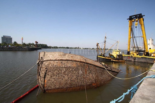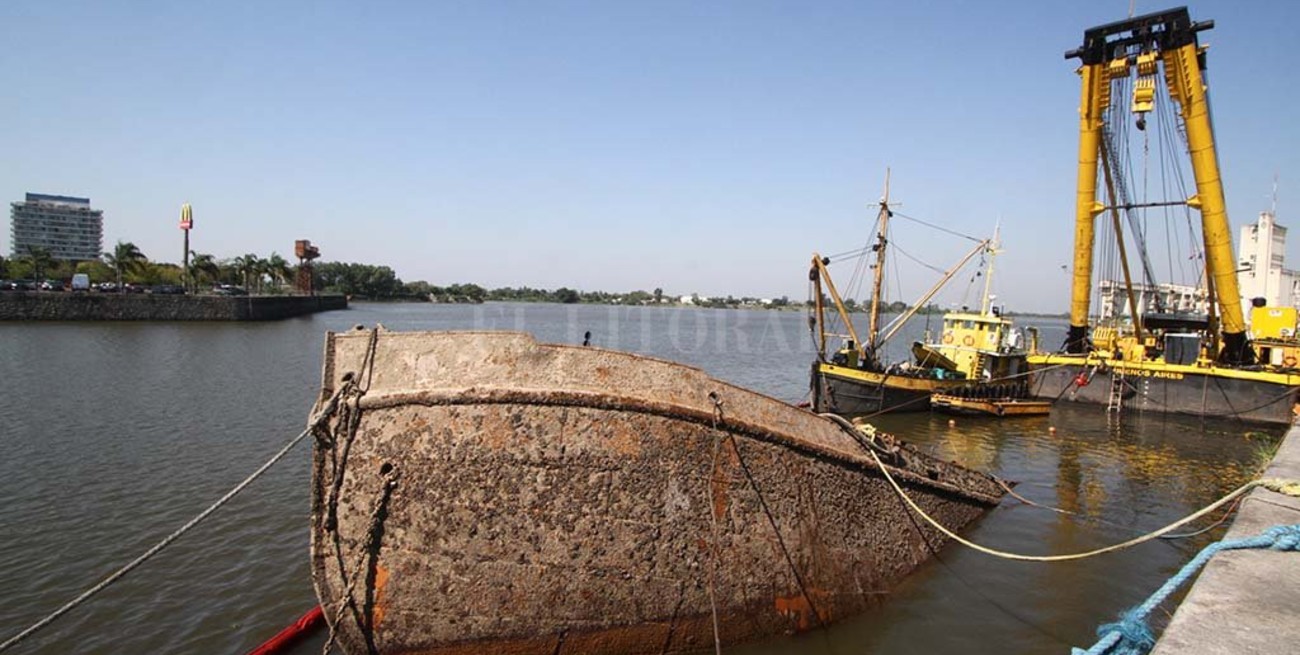 Ahora, los operarios inyectan aire para reflotar el casco y desde mañana comenzarían las tareas para levantarlo mediante una grúa flotante. Se trata de una millonaria inversión de rescate de un casco que hoy genera un daño ambiental.