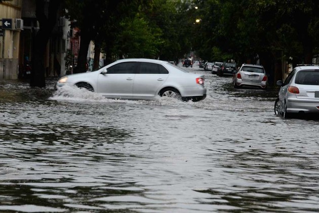 Una intensa lluvia de febrero de 2023 en Santa Fe, con los habituales anegamientos de las calles. Foto: Luis Cetraro