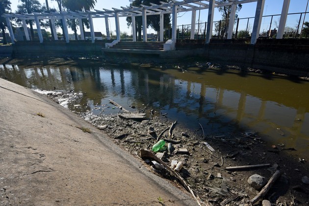 Puede verse basura de todo tipo a lo largo del lago artificial. Pablo Aguirre