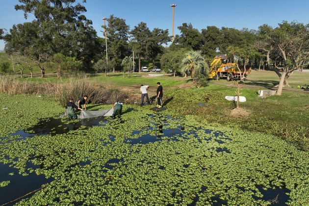 Esta semana, personal de la Municipalidad de Santa Fe comenzó con la limpieza del lago del Parque Sur. En el lugar se formó un “mini embalsado” con plantas acuáticas pero además se encontraron elementos inesperados.