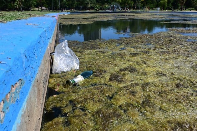 Los piletones del Parque Sur presentan aguas turbias por la acumulación de repollitos y residuos.