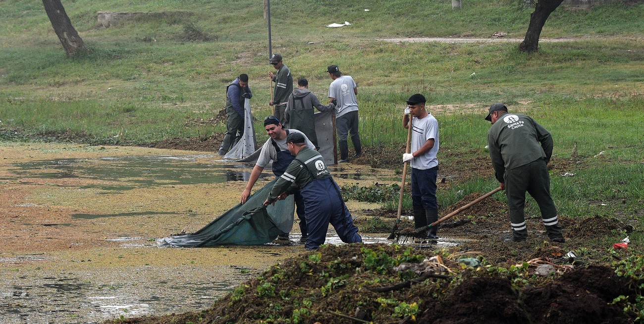 En mayo pasado, personal municipal limpió el lago. Crédito: Guillermo Di Salvatore