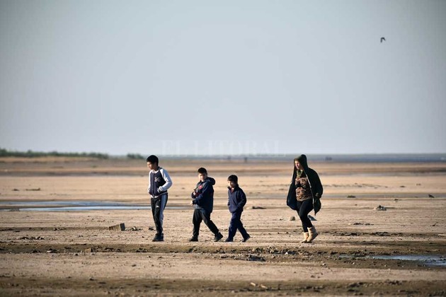 "No se puede", "está prohibido", "es un peligro", "se recuerda a la población que no se debe...". Los llamados de atención y las advertencias sobre el riesgo cierto de transitar sobre el lecho de la laguna Setúbal se repiten en muchos títulos y con todos los adjetivos desde que la bajante dejó expuesta la superficie antes cubierta por agua. No obstante, la postal que se observa desde uno y otro lado contradice todo aviso.