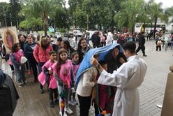 Había en los alrededores de la Basílica “Nuestra Señora de Guadalupe” una invasión de paraguas y pilotos impermeables. Los chicos de las juventudes religiosas trataban de acomodar con sogas y como podían esa masa humana de fe, que se iba acercando -por la vereda de calle Javier de la Rosa- lentamente hasta el templo. Había ancianos acompañados por sus hijos, familias enteras compartiendo el mate bajo la lluvia incesante, y jóvenes, muchos jóvenes.