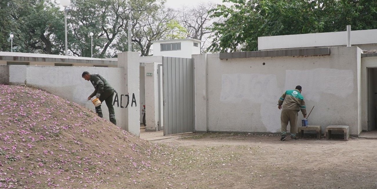 En la mañana de este jueves, cuadrillas municipales comenzaron a recuperar los espacios del Parque del Sur que fueron vandalizados con roturas de mobiliario y pintadas días atrás. Se comenzó con el Anfiteatro, sus bancos y columnas.