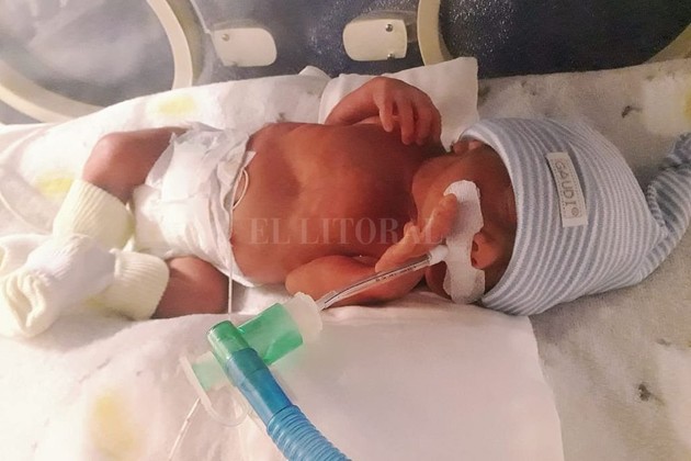 Se trata de Nicolás, que ayer nació prematuro, con 7 meses de gestación, y se encuentra en incubadora.