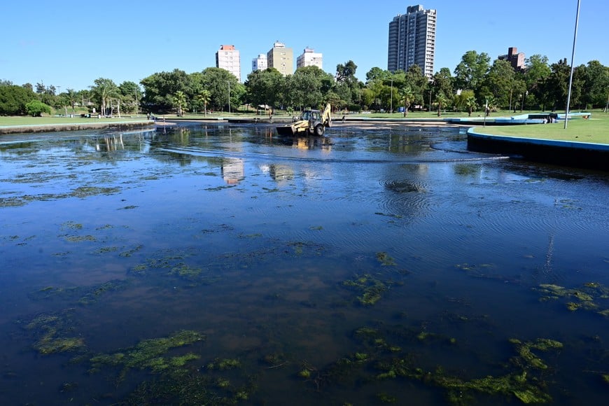 Los operarios municipales trabajaban con escobillones y máquinas de gran porte para tratar de retirar todos los desechos del fondo del piletón que, si bien tiene una figura irregular, en su máxima extensión mide 150 metros de largo por 80, de ancho.