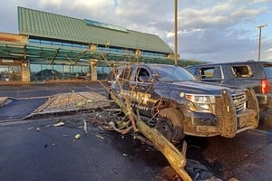 Los dos triángulos, de unos 30 cm de lado y con un ojo dibujado en la esquina superior, son símbolos de la masonería, cuyo ejemplo es el que se encuentra en el billete de un dólar americano. Se desconoce la identidad de los autores.