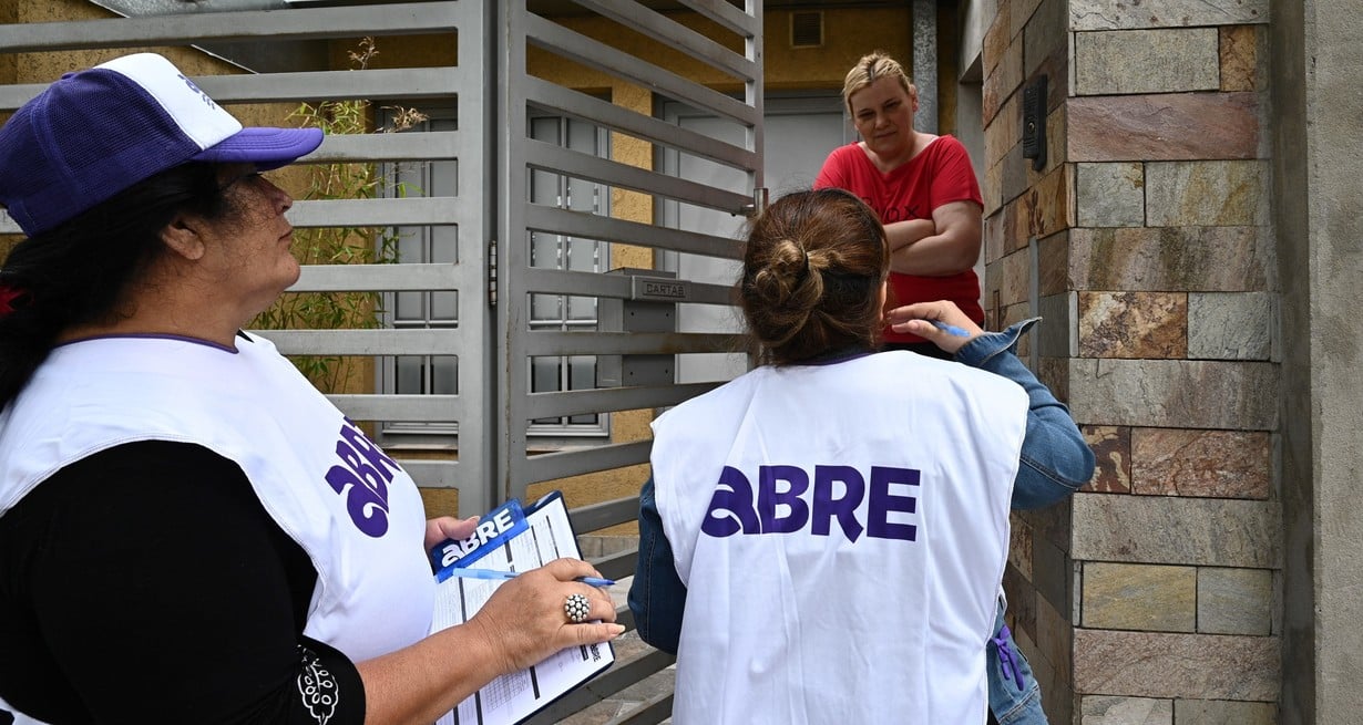 Las duplas del Abre recorren casa por casa con chalecos identificatorios. "Estamos teniendo una buena recepción por parte de los vecinos. Hicimos un trabajo previo de información la semana pasada", dijo Yasmin Lifschitz. Crédito: Flavio Raina