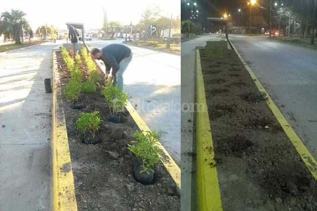 Sin embargo, a las pocas horas "desaparecieron" las plantas que fueron colocadas en las adyacencias de las mencionadas paradas de colectivo. Así lo manifestó el propio Corral que, a través de su cuenta oficial de Facebook, denunció este acto vandálico. "Para la tarde no habían dejado una sola planta de las que habíamos colocado", dijo.