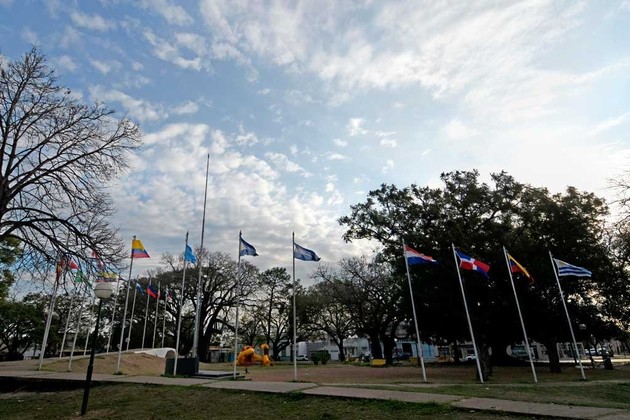 Primero fueron arreglados los mástiles; el de la Bandera Argentina ya había sido reparado y ésta lucía en las fechas patrias y los fines de semana largos. Pero ahora está escoltada por Brasil y Bolivia y rodeada por el resto de las enseñas que identifican a los países de la región, en un estricto orden alfabético que termina con Uruguay.