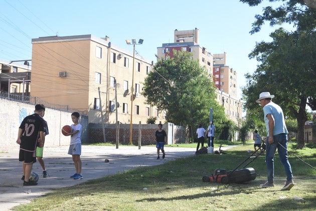 "¿Cuándo van a sacar los palos?", pregunta Dino a El Litoral, mientras va llegando con su pelota a sumarse al grupo de chicos que ya está jugando en la plaza. Los palos son unos postes que algún privado colocó quizá con la intención de generar un emprendimiento particular y que les interrumpe el libre correteo y el picadito. La plaza es -por ahora- un espacio con árboles en parte y con un alisado de cemento en otra, perdido a mitad de manzana entre los monoblocks de Las Flores II (se ingresa por calles Estrada y Lamadrid). Pero los niños ansían que ese predio tenga mejoras y se convierta en un lugar de juego para el barrio.