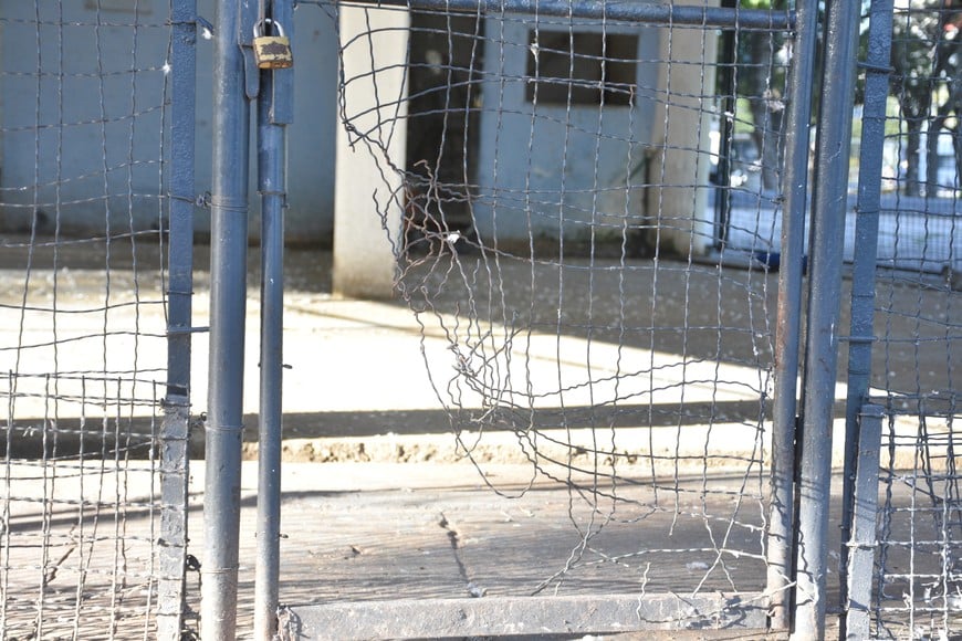 El tejido del portón de entrada, roto. Crédito: Manuel Fabatía