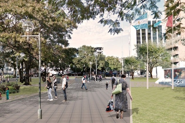 Los trabajos incluyen la restauración de la fuente y un sistema de retardadores pluviales. "En definitiva, será una nueva plaza con visión de futuro, sustentabilidad, espacio verde y soluciones basadas en la naturaleza que, en definitiva, es el modelo de la ciudad del futuro", concluyó Mendiondo.